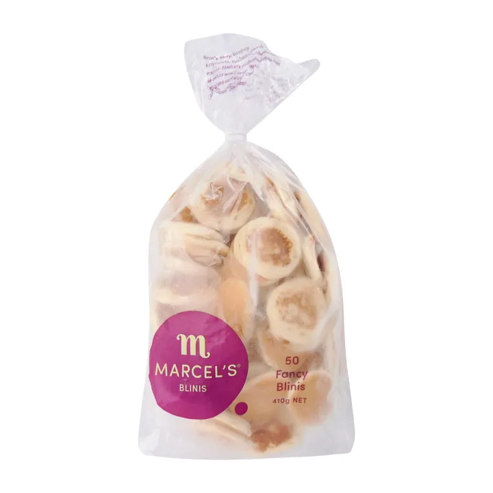 Marcel’s Fancy Blinis are a savoury mini pancake which are perfect for catering, canapes and function finger food. Each blini is individually frozen, so just thaw out what you need and save the rest!